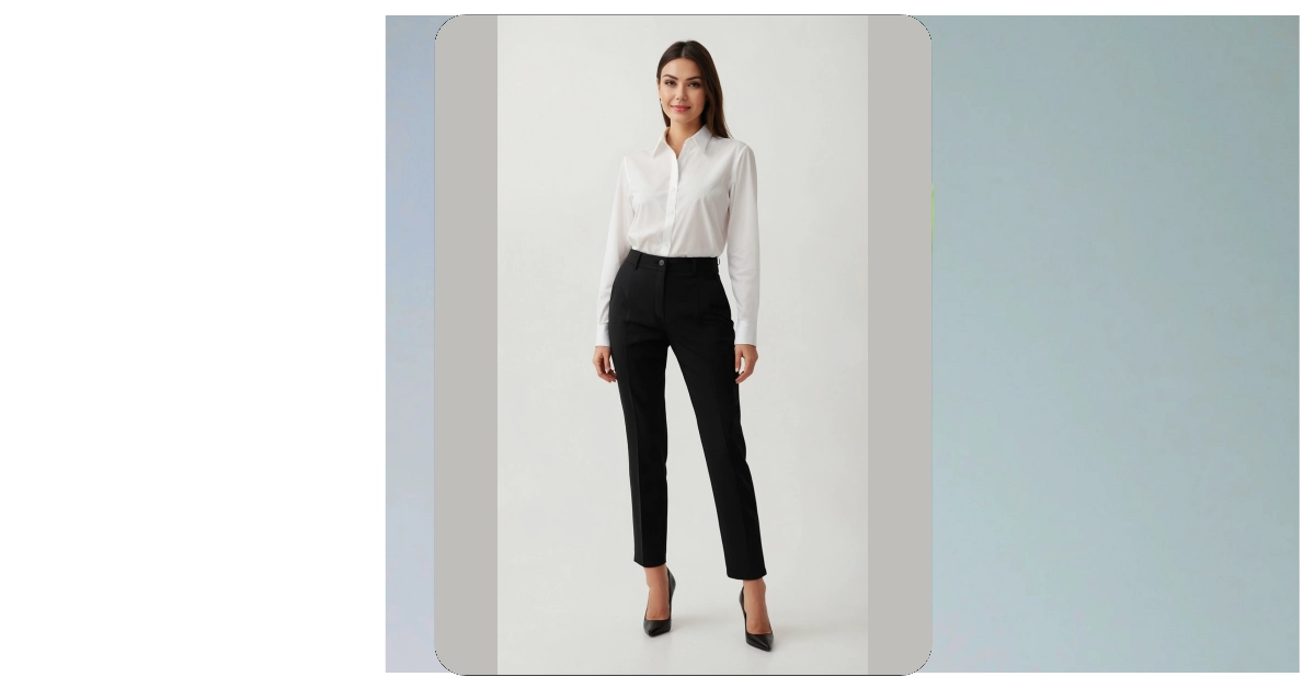 Check out this look! This classic black slacks and crisp white shirt combo is basically the ultimate disguise for anyone who needs to look instantly smart. Those black slacks aren’t just pants; they’re like your secret fashion weapon. You could be totally stressing about a pop quiz or what’s for dinner, but throw on an outfit like this, and suddenly, everyone thinks you’re ready to run a meeting or give a TED Talk. It’s the perfect way to pretend you have it all together, even if you just rolled out of bed five minutes ago and are mentally listing all the snacks in the pantry.