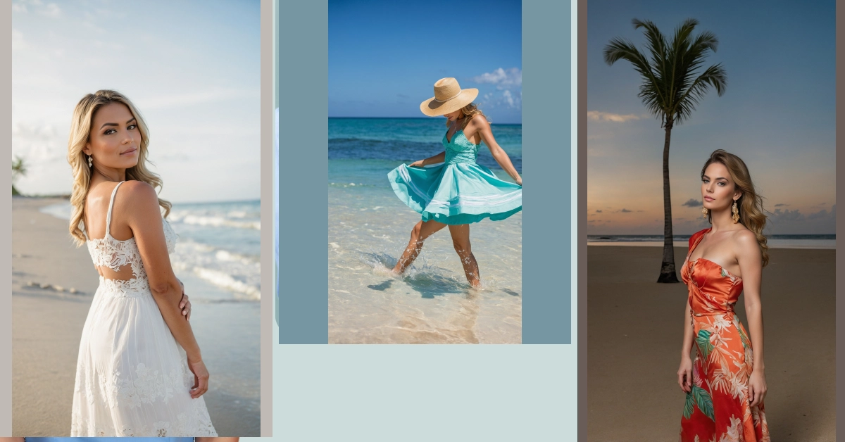 A tropical beach photoshoot isn’t just about looking effortlessly fabulous; it’s often a secret battle against the elements! This picture perfectly captures that dreamy vibe with the flowing dress and hair catching the golden light. What you don’t see is probably the photographer politely asking the wind to cooperate, or the model secretly hoping her perfectly styled hair doesn’t turn into a glorious, yet uncontrollable, sea-monster mane. Getting that “I woke up like this” look when the ocean breeze is trying its best to undo all your hard work is a true talent!
