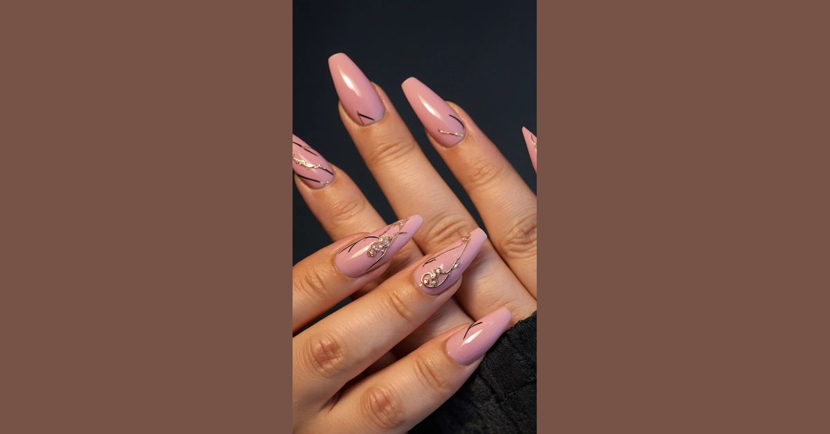 These nails are totally serving looks with a shade of pink that’s just begging for a spotlight. While they might not be the super blinding ‘hot pink’ you sometimes see, this elegant rose shade is definitely bringing the heat with its fancy gold and black swirl designs. It’s like your nails decided to get dressed up for a fancy ball, but also wanted to make sure they could still sneak in some glittery fun. Talk about making a statement without even saying a word – these nails practically shout “I’m fabulous!”